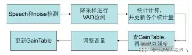 以WebRTC为例,它的自动增益控制算法的基本流程图如下所示: