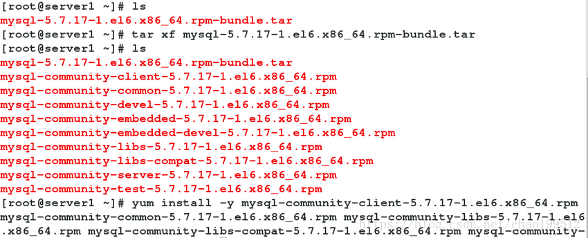 yum install mysql-community-server-5.7.17-1.el6.x86_64.rpm