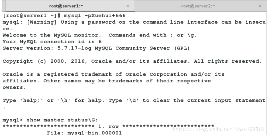mysql>change master to master_host='172.25.100.1',master_user='redhat',master_password='Xuehui+666',master_log_file='mysql-bin.000001',master_log_pos=450; ##和master建立认证联系