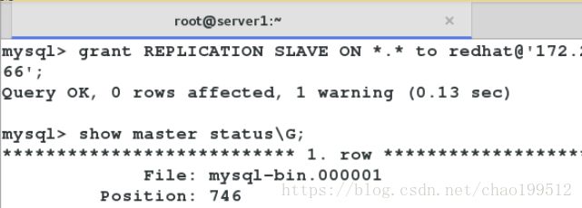 mysql> grant REPLICATION SLAVE ON *.* to redhat@'172.25.100.%' identified by 'Xuehui+666'; ##授权slave对任何数据库的任何表操作,以redhat身份,从172.25.100.0/24网段登陆,密码‘Xuehui+666‘