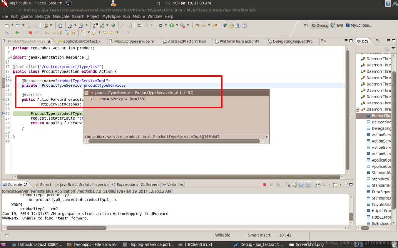 在applicationContext.xml文件中,没有配置 <tx:annotation-driven>标签时,截图如下: