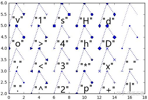 marker=['.',',','o','v','^','<','>','1','2','3','4','s','p','*','h','H','+','x','D','d','|','_','.',',']