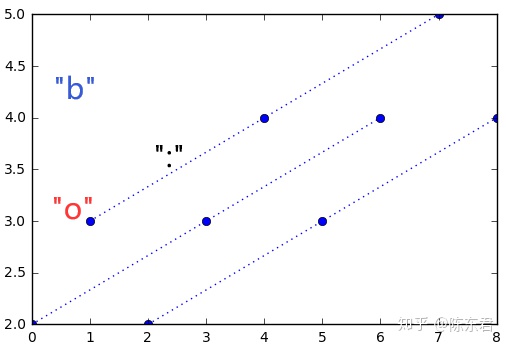 plt.plot(x,y,"ob:") #"b"为蓝色, "o"为圆点, ":"为点线