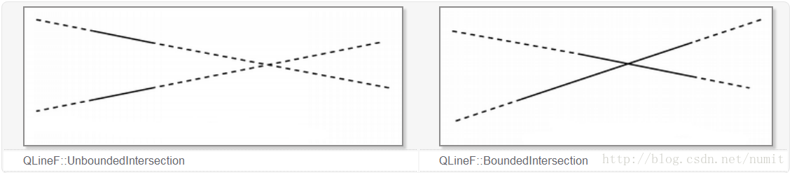 - IntersectType QLineF::intersect(const QLineF & line, QPointF * intersectionPoint)const