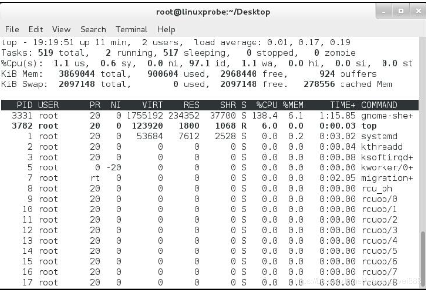 及平均负载值等信息。平均负载值指的是系统在最近 1分钟、 5分钟、 15分钟内的压力情