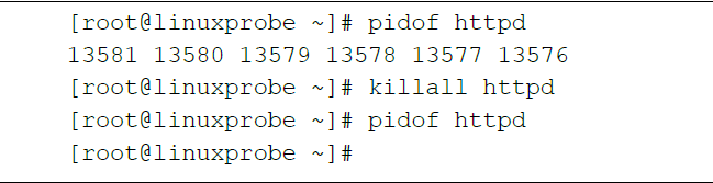 些进程会比较麻烦,此时可以使用 killall命令来批量结束某个服务程序带有的全部进程。下