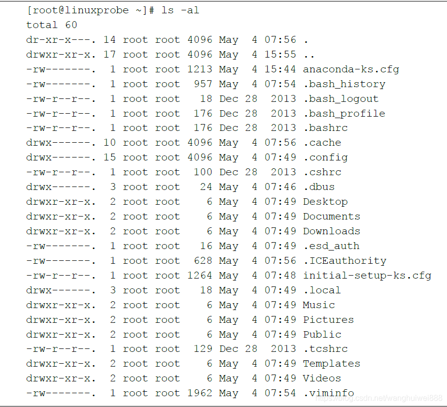 两个参数整合之后,再执行 ls命令即可查看当前目录中的所有文件并输出这些文件的属性