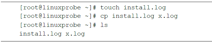 接下来,使用touch创建一个名为 install.log的普通空白文件,然后将其复制为一份名为x.log的备份文件,最后再使用 ls命令查看目录中的文件: