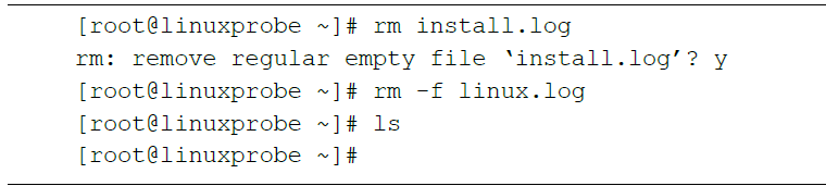 需要在 rm命令后面一个 -r参数才可以,否则删除不掉。我们来尝试删除前面创建的 install.log和 linux.log文件: