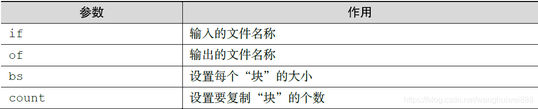 的数据块来复制文件的内容。 dd命令的参数及其作用如下表。