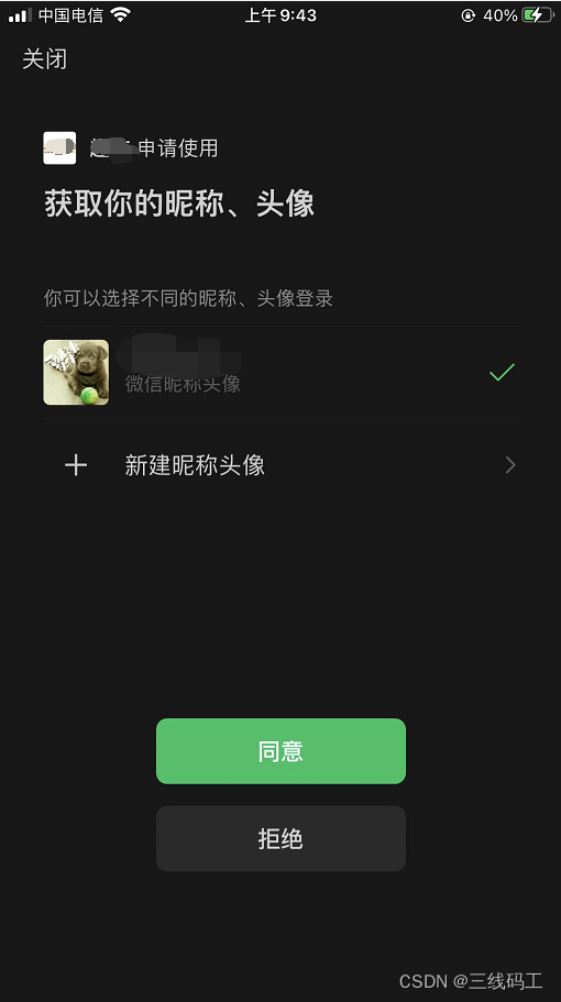 我们的手机就会弹出一个授权页面。记住让后端绑定一个微信公众,通过授权该公众就可以了