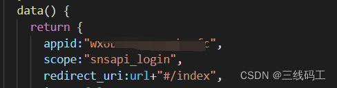 当点击同意之后,网站就会重定向一个链接,这个code的值是后端给的,前端监听路由变化,就可以拿到code,通过接口就可以获取到微信信息,从而实现微信授权登录
