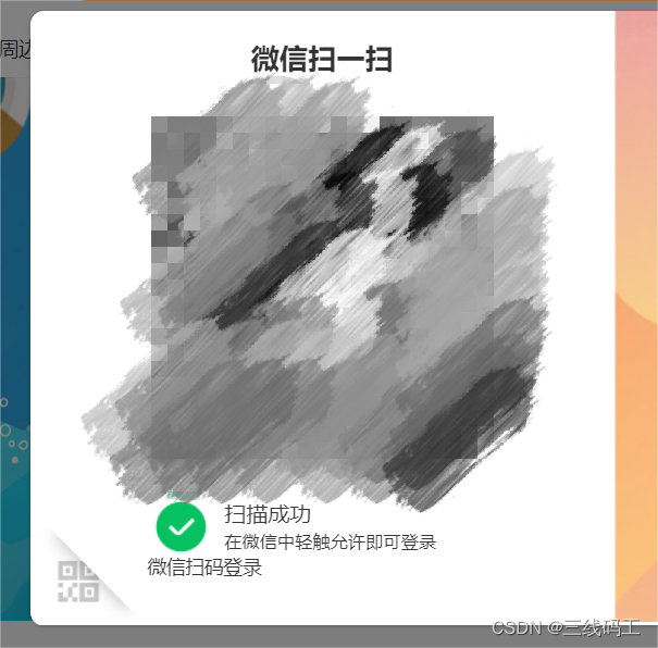 流程:使用vue-wxlogin组件当我们打开微信扫一扫,此时二维码组件会有变化,显示扫描成功