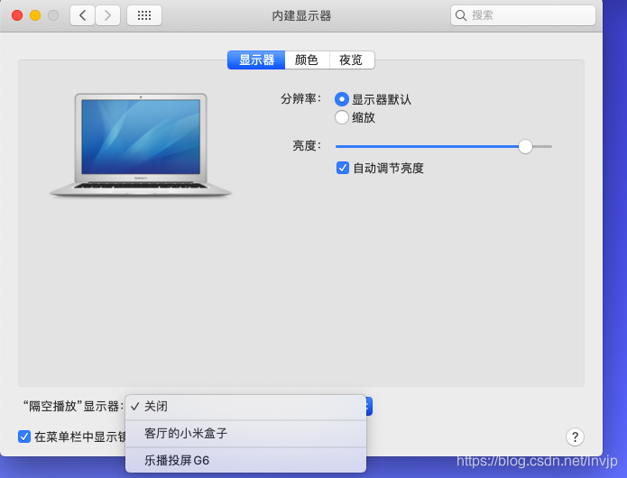 macbook的设置中“隔空播放”显示器只有“关闭”选项
