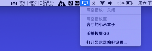 由于局域网中没有可以投放的显示器或设备。如果电脑连接的局域网中有可以无线投屏设备的时候,mac系统会自动检测到并显示。