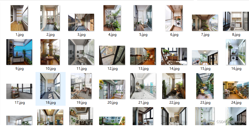 深度学习的基础就是数据,完成图像分类,当然数据也必不可少。先使用爬虫爬取阳台图片1200张以及非阳台图片1200张,图片的名字从0.jpg一直编到2400.jpg,把爬取的图片放置在同一个文件夹中命名为image(如下图1所示)。