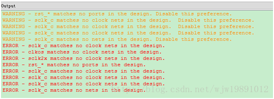 比如我要解决下面这个错误警告:ERROR - sclk_c matches no clock nets in the design.