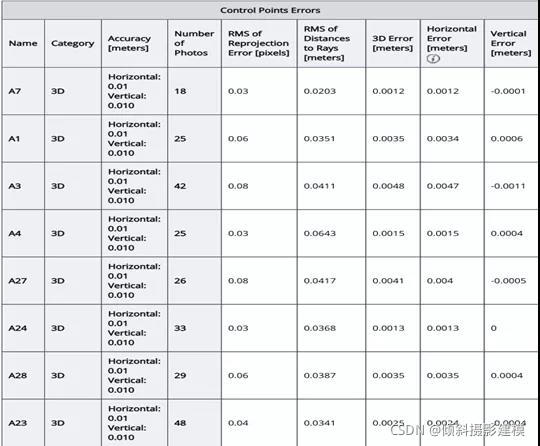 区域网平差部分结果如下: