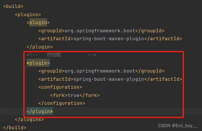 pom.xml plugins节点导入热加载插件