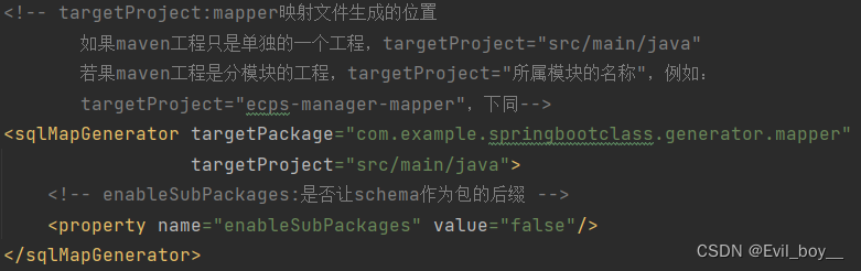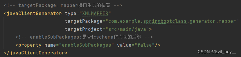 <sqlMapGenerator targetPackage="com.example.springbootclass.generator.mapper"