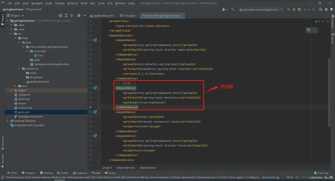 pom.xml dependencys 节点导入热加载的包