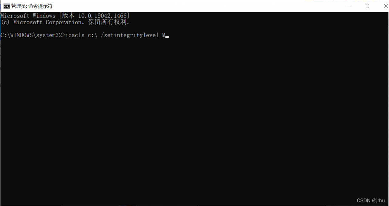 2.在命令提示符中输入:icacls c:\ /setintegritylevel M按回车键,稍等会出现“已成功处理一个文件”,则表示已成功可以往C盘复制文件了。