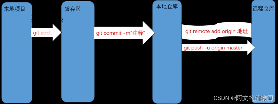 git中分为本地项目,暂存区,本地仓库,远程仓库