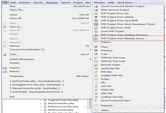 1点击File->PHP Project from Remote Server