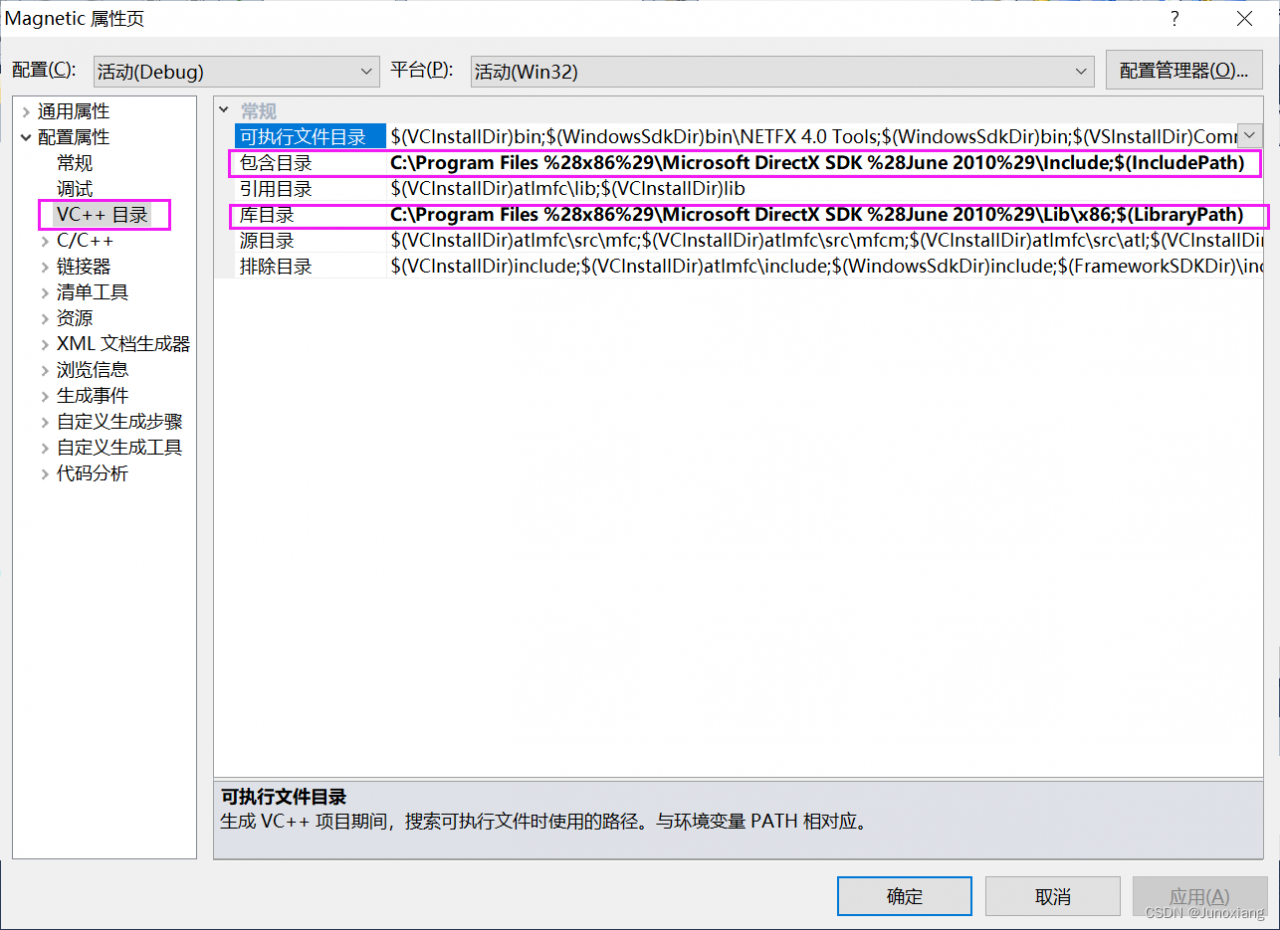 包含文件 “C:\Program Files (x86)\Microsoft DirectX SDK (June 2010)\Include”、