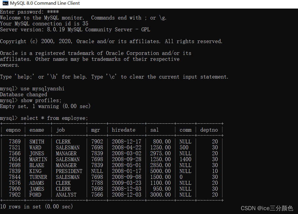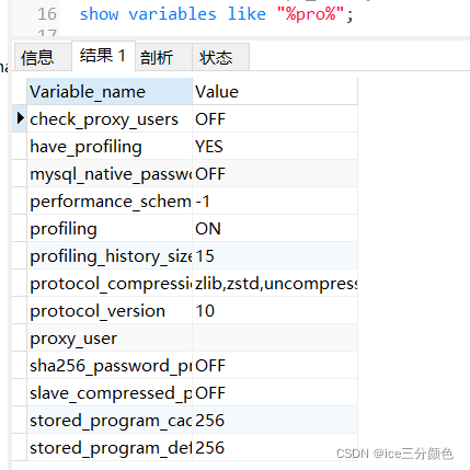 默认数据库是不开启的,且变量profiling是用户变量,每次都要重新启用