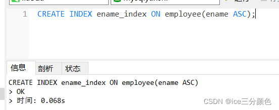 例:为employee表的ename列上建立一个升序普通索引ename_index。