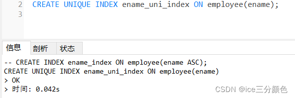 例:在employee表的ename列上建立一个唯一性索引ename_uni_index。
