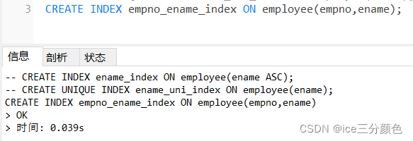 例:在employee表的empno和ename列上建立一个复合索引empno_ename_index。