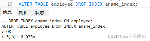 可以先用CREATE INDEX ename_index ON employee(ename ASC);重新创建一下索引ename_index,之后再作为测试用alter table删除
