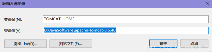 ①新建TOMCAT_HOME,属性值:D:\JavaSoftware\apache-tomcat-8.5.40,即tomcat所在目录