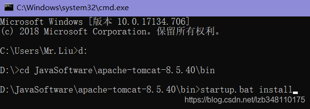 输入startup.bat install,稍候提示 the service "tomcat8" has been installed ,则表示成功。因为本机已安装,所以无法看到安装成功的提示。