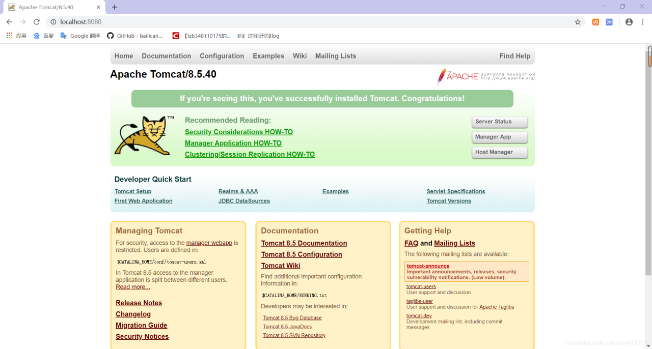 6.至此,Tomcat 8.5.40安装完毕