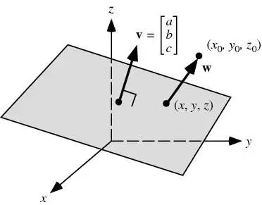 这个问题如果是要从解析几何的角度去解决几乎复杂到没法下手,除非是平面恰好是过坐标轴的特殊情况,但是如果从向量模型考虑就很简单:根据平面方程,平面的法向量(Normal Vector)是v=(a, b, c)