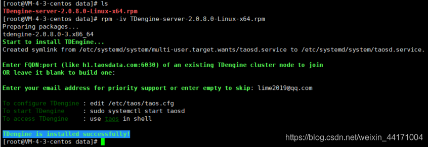 rpm -iv TDengine-server-2.0.8.0-Linux-x64.rpm