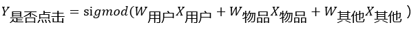 2. 计算公式:Y根据目标设计:例如是否点击(是:1,否:0,最后预测一个0-1之间的点击概率);X根据特征工程设计:这一块就涉及到了前面提到的用户画像与内容画像,所有的画像都是对样本的特征的刻画。特征工程需要根据业务场景选择合适的特征并进行一定的加工;W由模型训练得到。