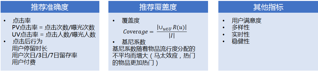 如何去获得推荐效果。可以分为离线实验、用户调查、在线实验三种方法。