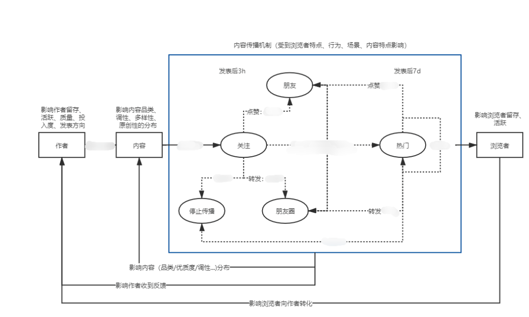 从feed传播来看,推荐算法给予其冷启流量,提升传播速率,利于其对抗时间衰减,快速达到社交裂变拐点,进而大规模传播