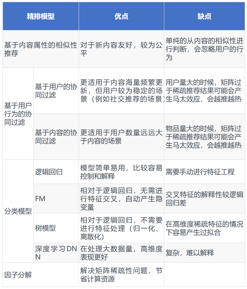 过滤:对于内容不可重复消费的领域,例如实时性比较强的新闻等,在用户已经曝光和点击后不会再推送到用户面前。
