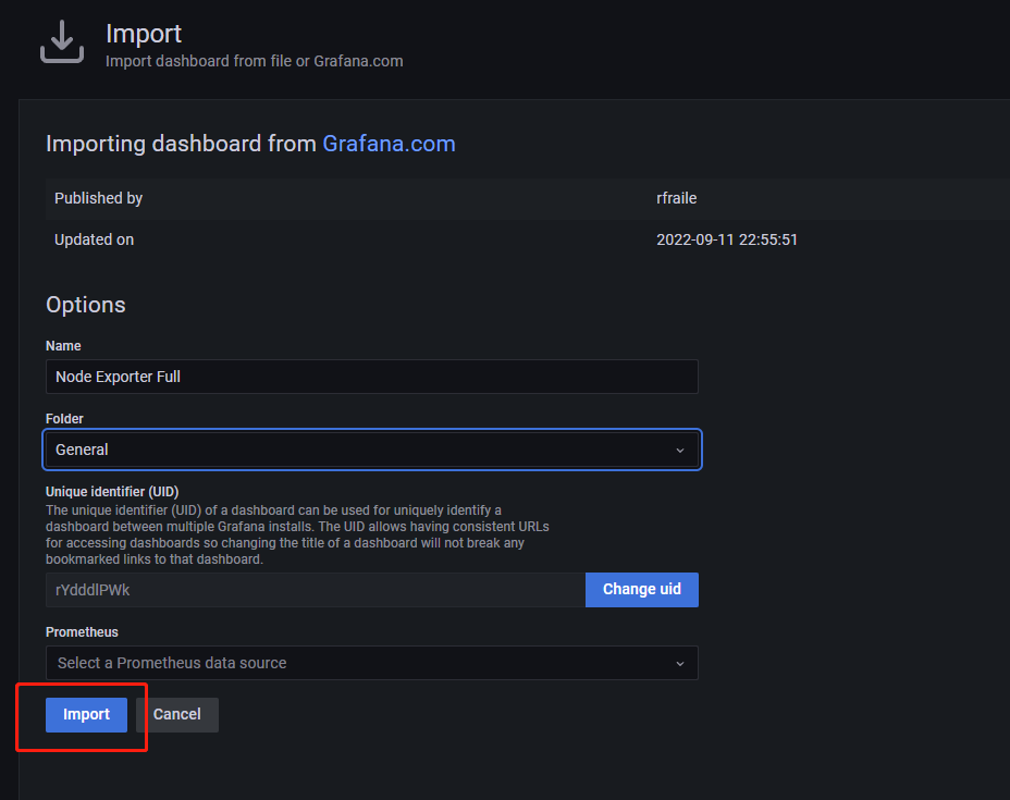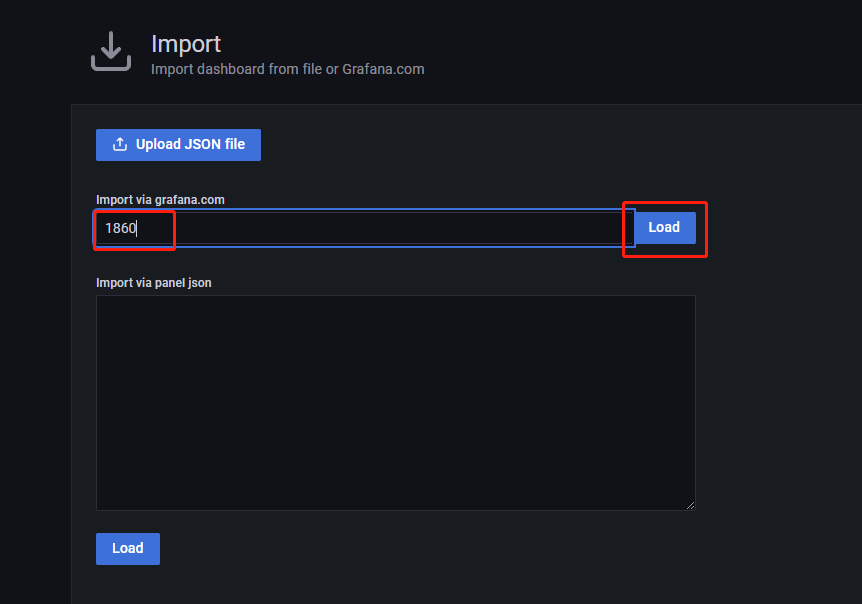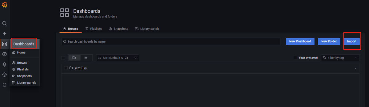 (3)然后到Grafana中点击Dashboard页面,点击【Import】
