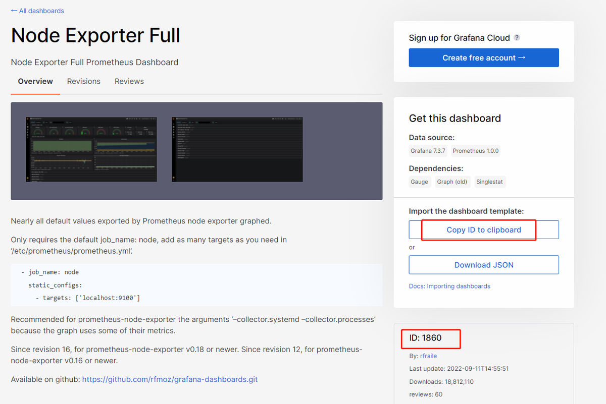 (1)从Grafana的Dashboard页面 https://grafana.com/grafana/dashboards/ 挑选模板,这里直接挑选第一个,点击进去