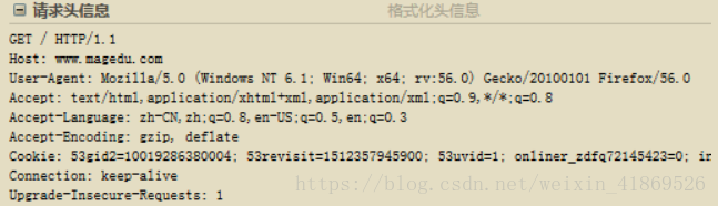 请求和响应消息都是由请求行、Header消息报头、Body消息正文组成。