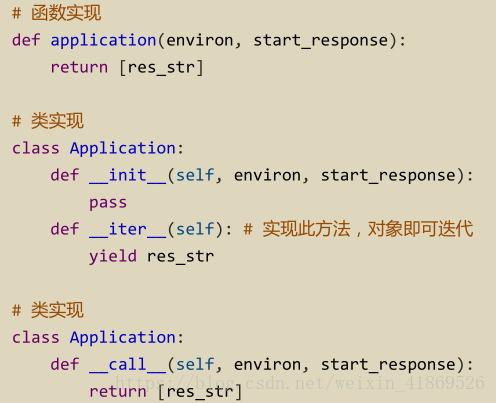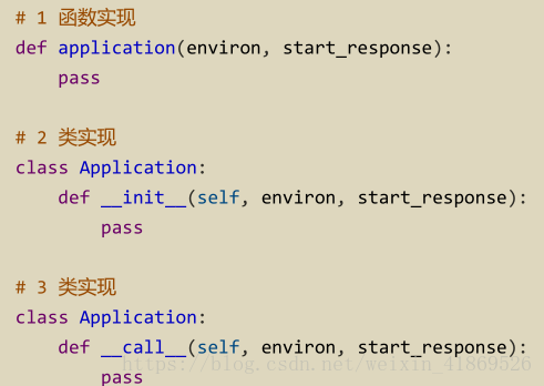 1、应用程序应该是一个可调用对象,Python中应该是函数、类、实现了__call__方法的类的实例。