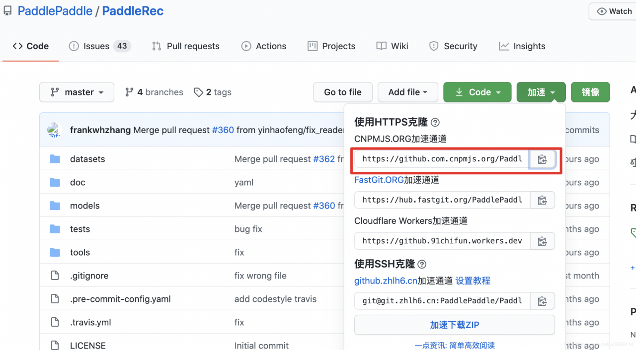 ➜ pythonFiles git clone https://github.com.cnpmjs.org/PaddlePaddle/PaddleRec.git