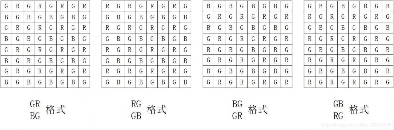 对于不同的sensor,在其内部形成的rawRGB数据格式也是有区别的。rawRGB数据排列格式有四种如下表(这里的格式是对于2*2像素矩阵而言的):