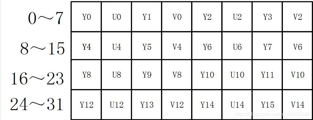 此格式有两种情况:分为YUYV格式和UYVY格式。